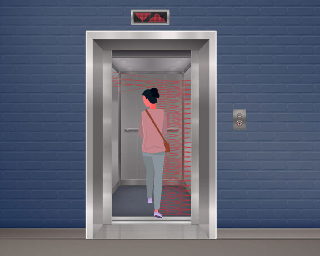 Một trong những cơ chế an toàn quan trọng của cửa thang máy là hệ thống cảm biến phát hiện vật cản. Cảm biến này có nhiệm vụ nhận biết khi có người hoặc vật nằm trong vùng đóng cửa, từ đó gửi tín hiệu để cửa tự động mở lại.